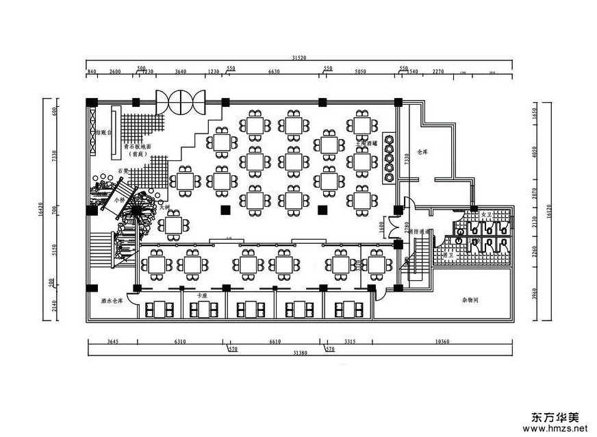 ▄設(shè)計(jì)需求: 設(shè)計(jì)師采用自然淳樸卻又不失典雅的設(shè)計(jì)手法,通過材質(zhì)及色彩的搭配使用,給予顧客營(yíng)造了雅致的就餐環(huán)境,雖然基本采用的是暗色調(diào),卻沒有壓抑的感覺,反而給人以古樸、沉靜的舒適的優(yōu)雅感覺。